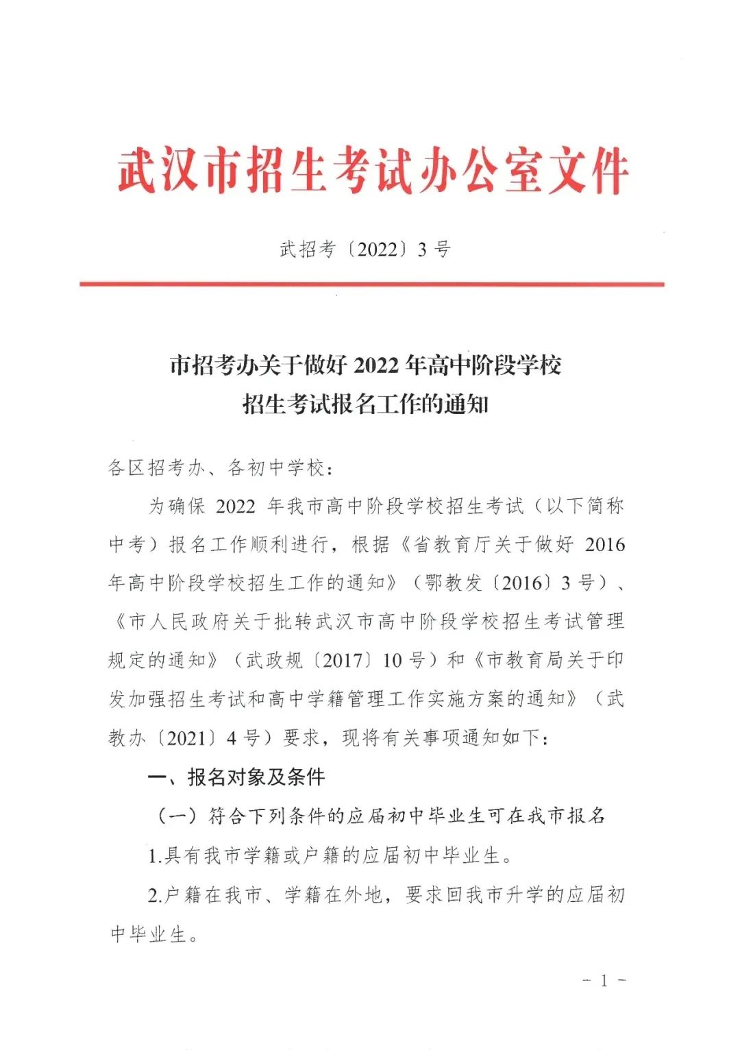 武漢市招考辦發(fā)布了關(guān)于做好2022年高中階段學(xué)校招生考試報名工作的通知,其中明確了報名時間以及方法流程等內(nèi)容。